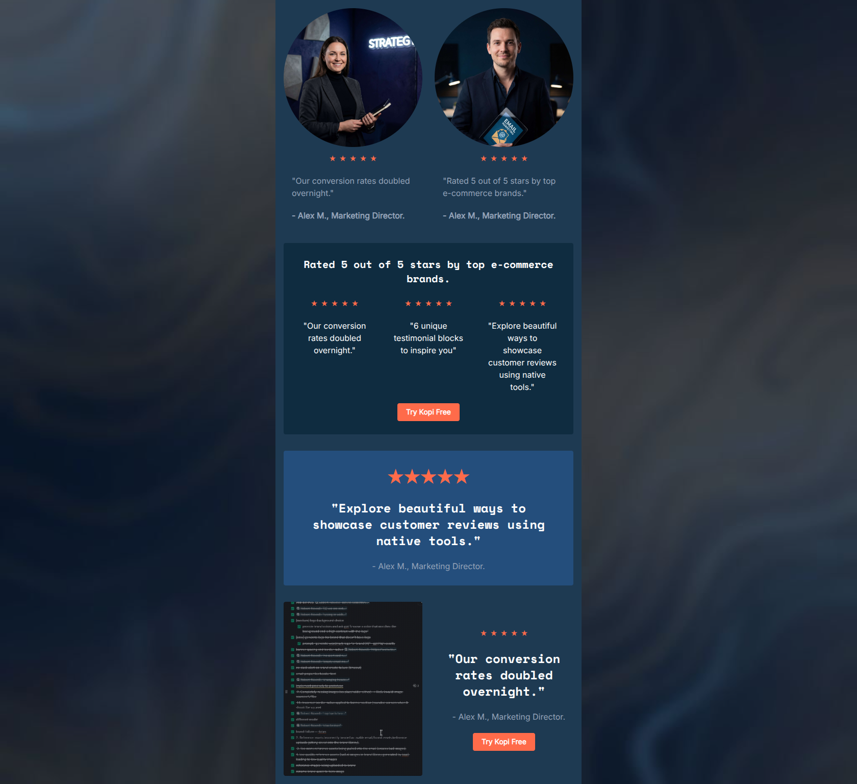 CRITICAL FAILURE: The email contains obvious copy-paste errors where product feature descriptions are attributed as quotes to a fake customer ('Alex M.'), making the message incoherent. While the visual contrast and hero section are strong, this careless execution, combined with zero personalization for a high-value dormant segment, caps the conversion potential severely.