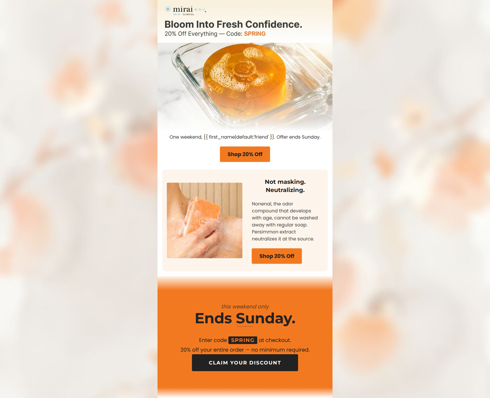 “Fresh start. 20% off. Ends Sunday.”