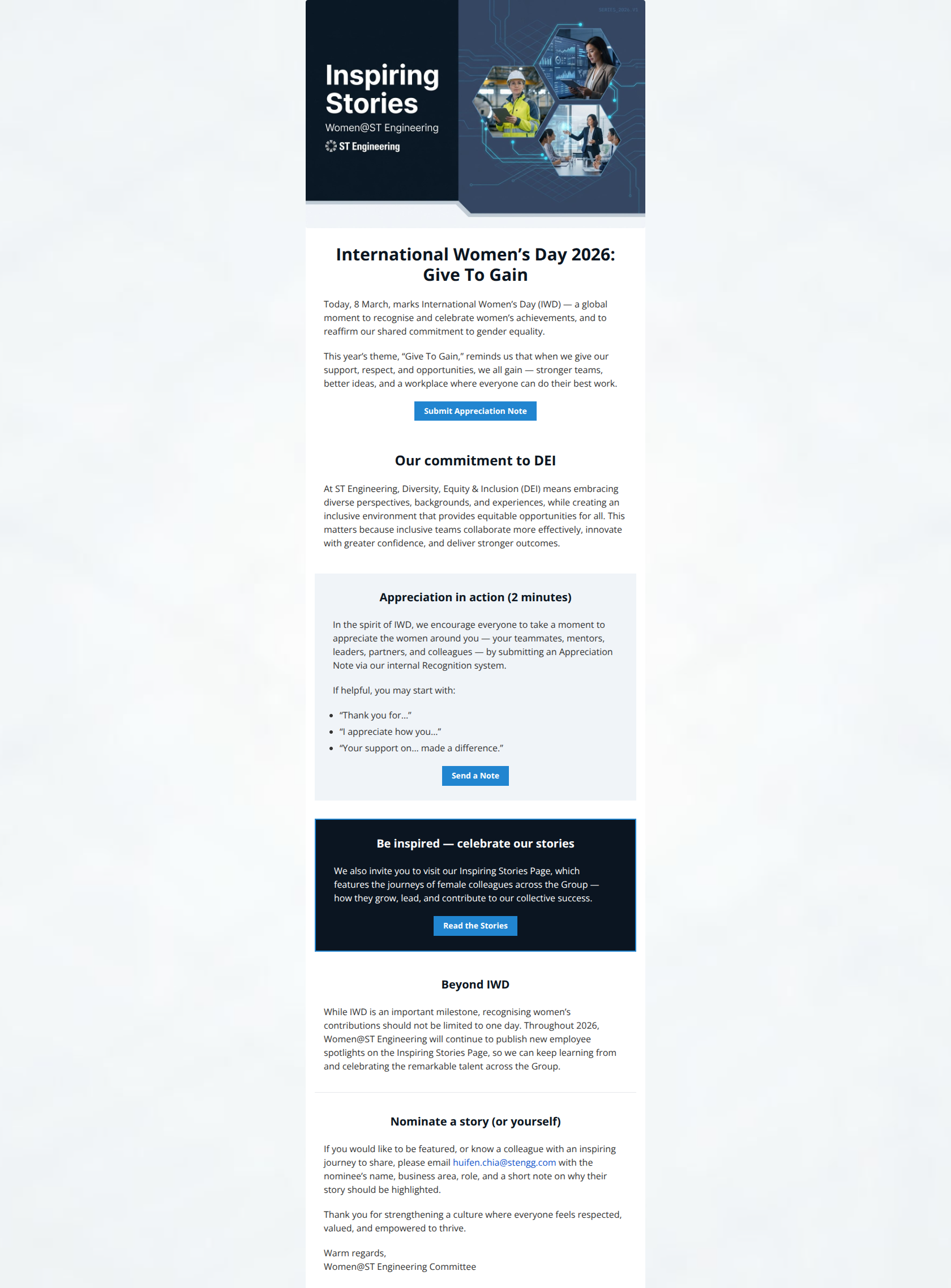 This is a competent, professional internal campaign email that successfully utilizes brand assets to create a polished look. Its biggest strength is the use of micro-copy (e.g., "2 minutes") to reduce friction, while its biggest weakness is the placement of the dense "DEI commitment" text block, which acts as a speed bump before the primary interactive sections.