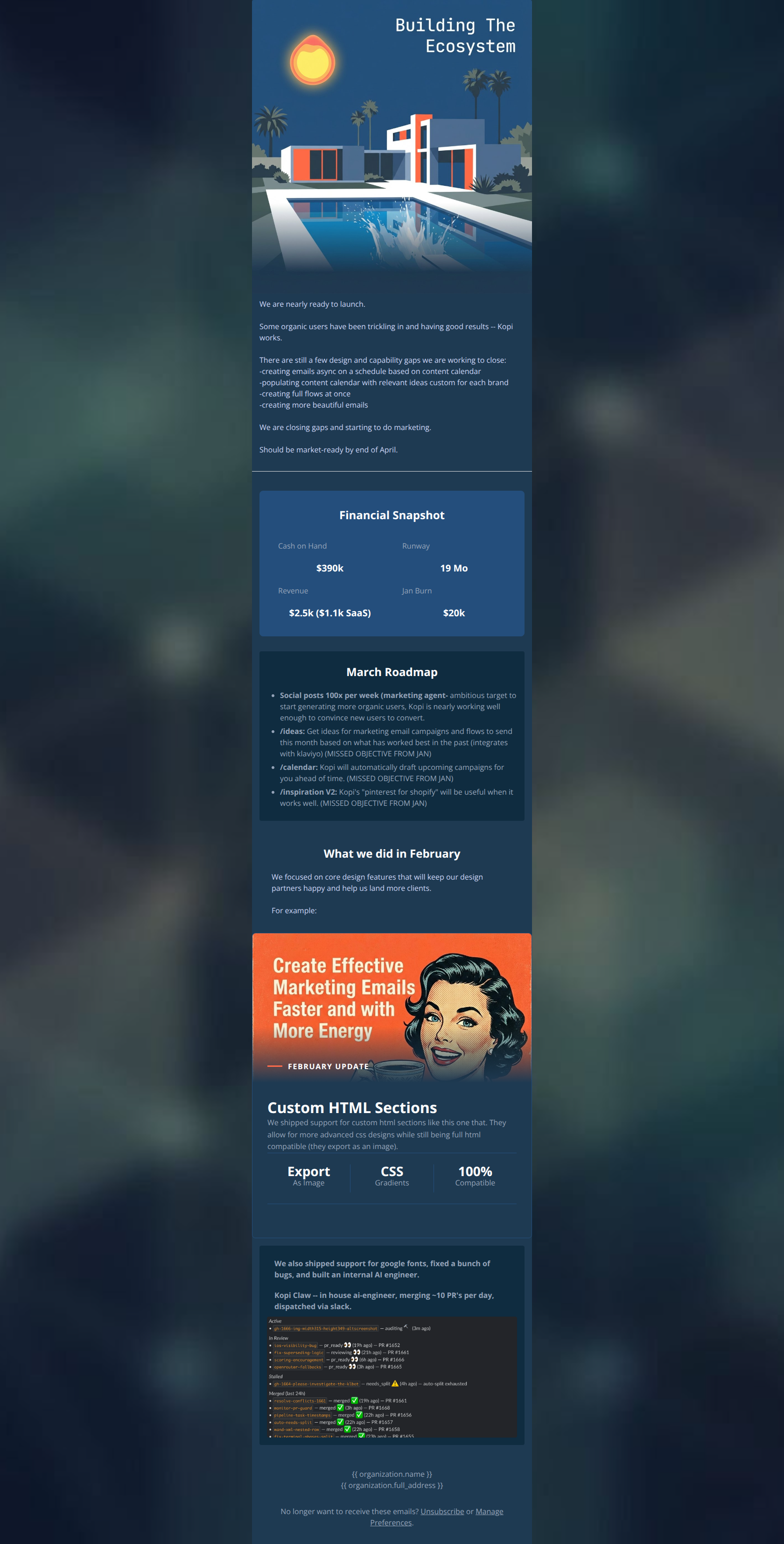 Generate professional email designs like this one in seconds with Kopi AI.