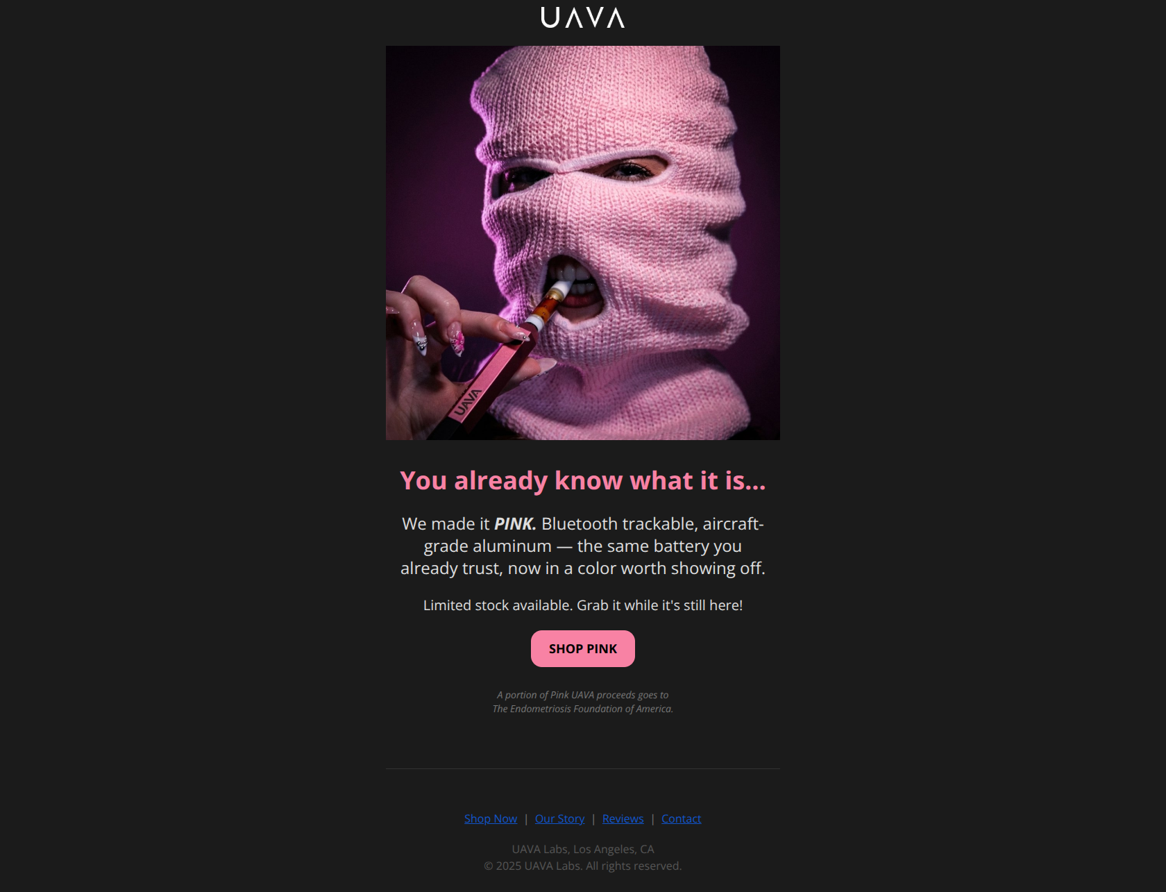 This product launch email visually nails the 'Tech-Noir' aesthetic with a striking hero image, but leaves conversion potential on the table by hiding the price and burying a powerful cause-marketing message. By shifting the tone away from presumptuous slang and making the value proposition more concrete, this email could drive significantly more clicks.