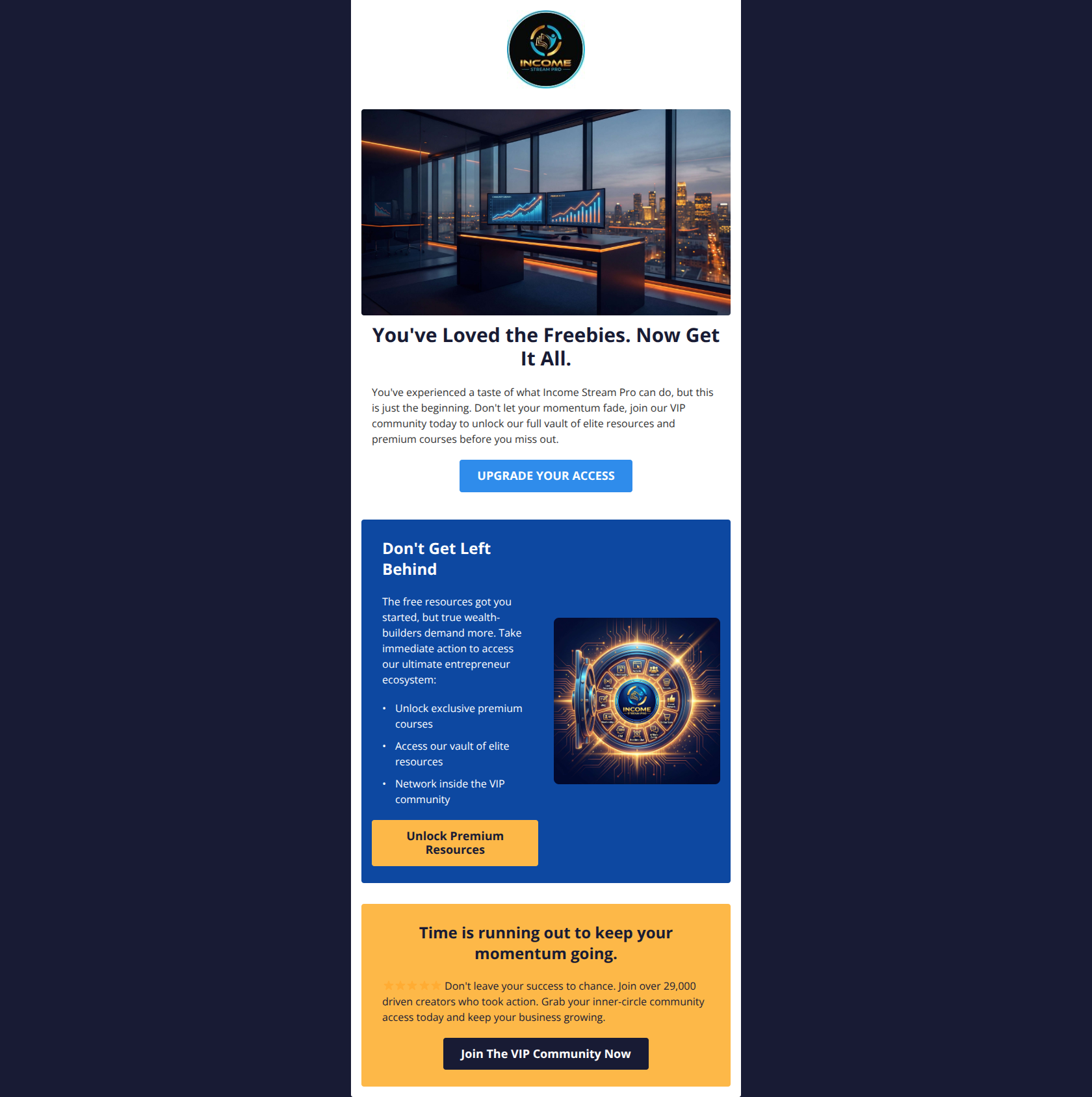 This email looks aesthetically on-brand and communicates a clear path to action, but it is functionally thin and relies too heavily on generic hype. To drastically improve conversion, the copy must pivot from vague phrases like 'The Ultimate Hub' to concrete, benefit-driven value propositions that highlight the platform's core differentiators (e.g., white-labeling) and massive social proof.
