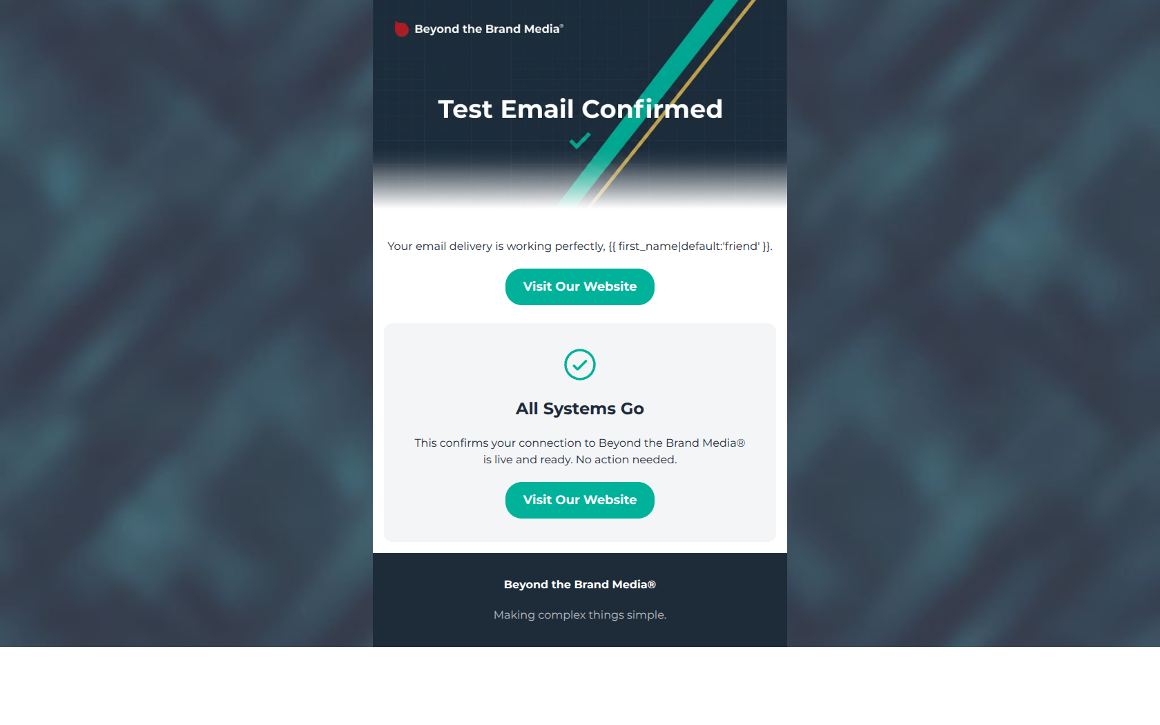 CRITICAL FAILURE: This email acts as an internal system test rather than a customer-facing promotional asset. It explicitly tells the reader 'No action needed,' completely undermining the fundamental goal of driving clicks. While the layout is clean and adheres strictly to the brand's visual identity, it fails entirely as a conversion vehicle because it offers zero value, no context, and actively discourages engagement. The score is severely penalized due to this critical failure in basic marketing logic.