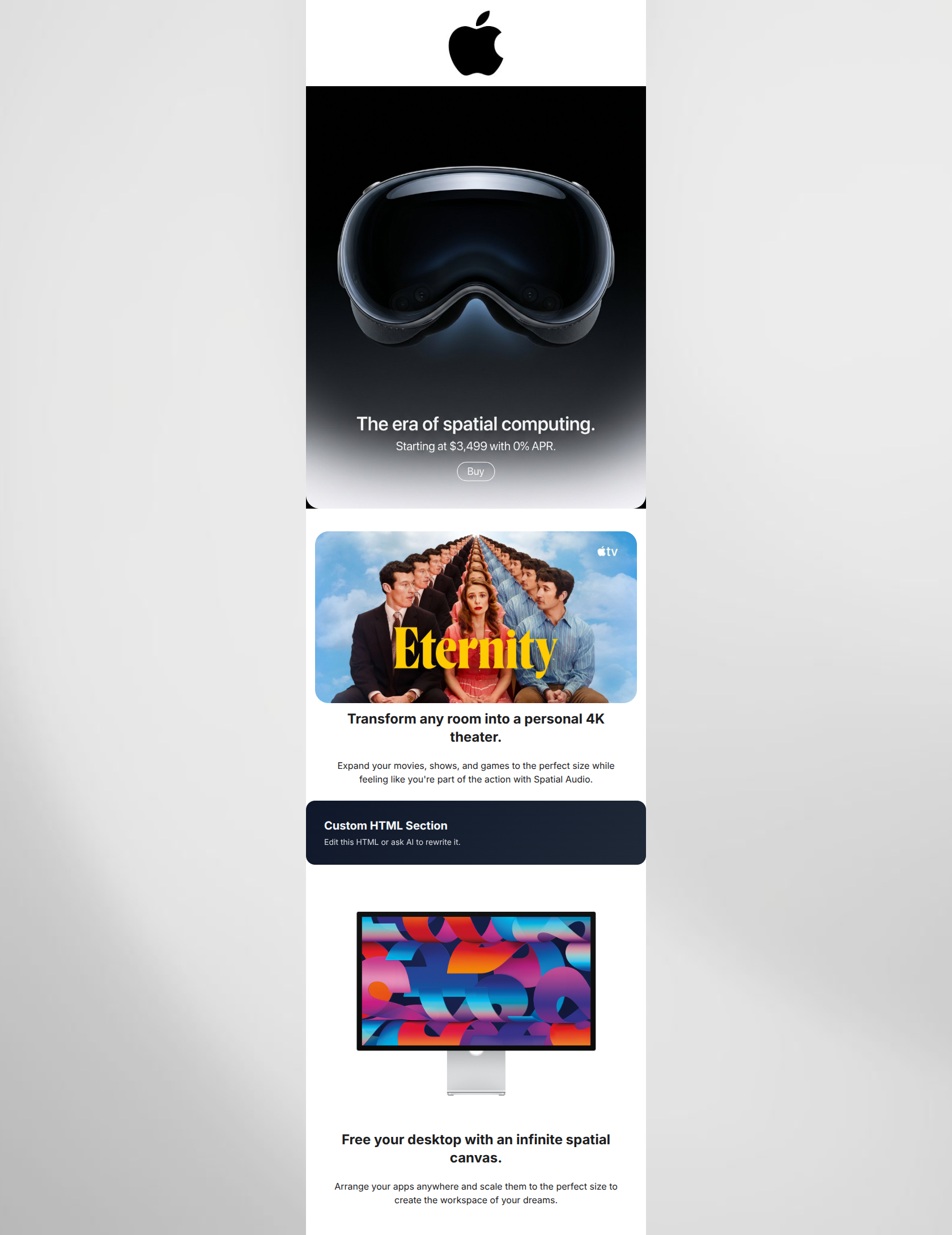 Generate professional email designs like this one in seconds with Kopi AI.