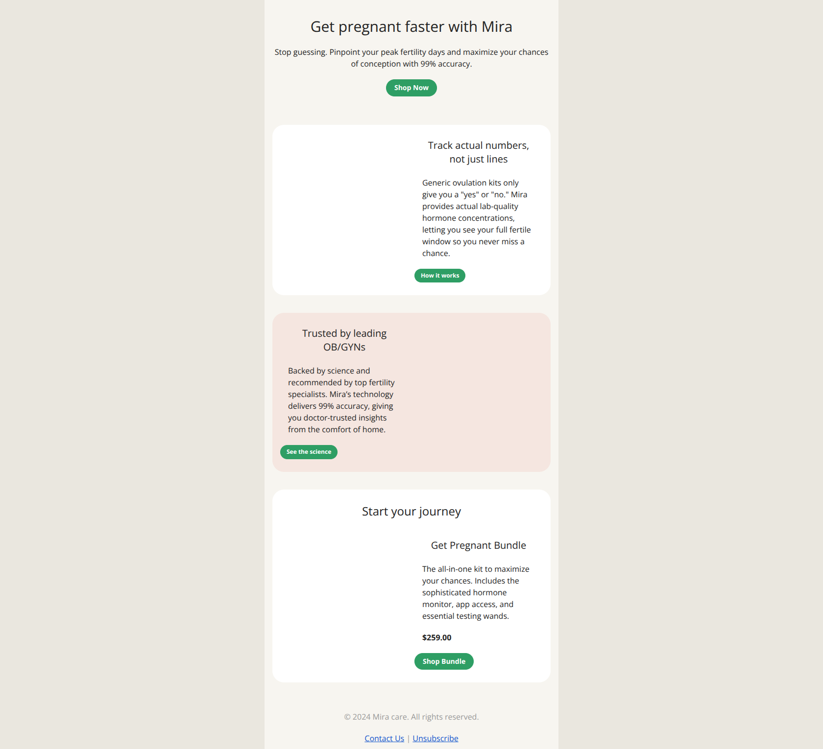 This email benefits from exceptionally strong, benefit-driven copy that perfectly aligns with the brand's scientific and premium positioning. However, the visual hierarchy is weakened by a hero layout that places the image before the headline (risking the value prop being pushed down) and a lack of friction-reducing elements near the high price point. While the narrative flow is logical, the email feels visually dry and relies too heavily on standard 'Shop Now' CTAs.