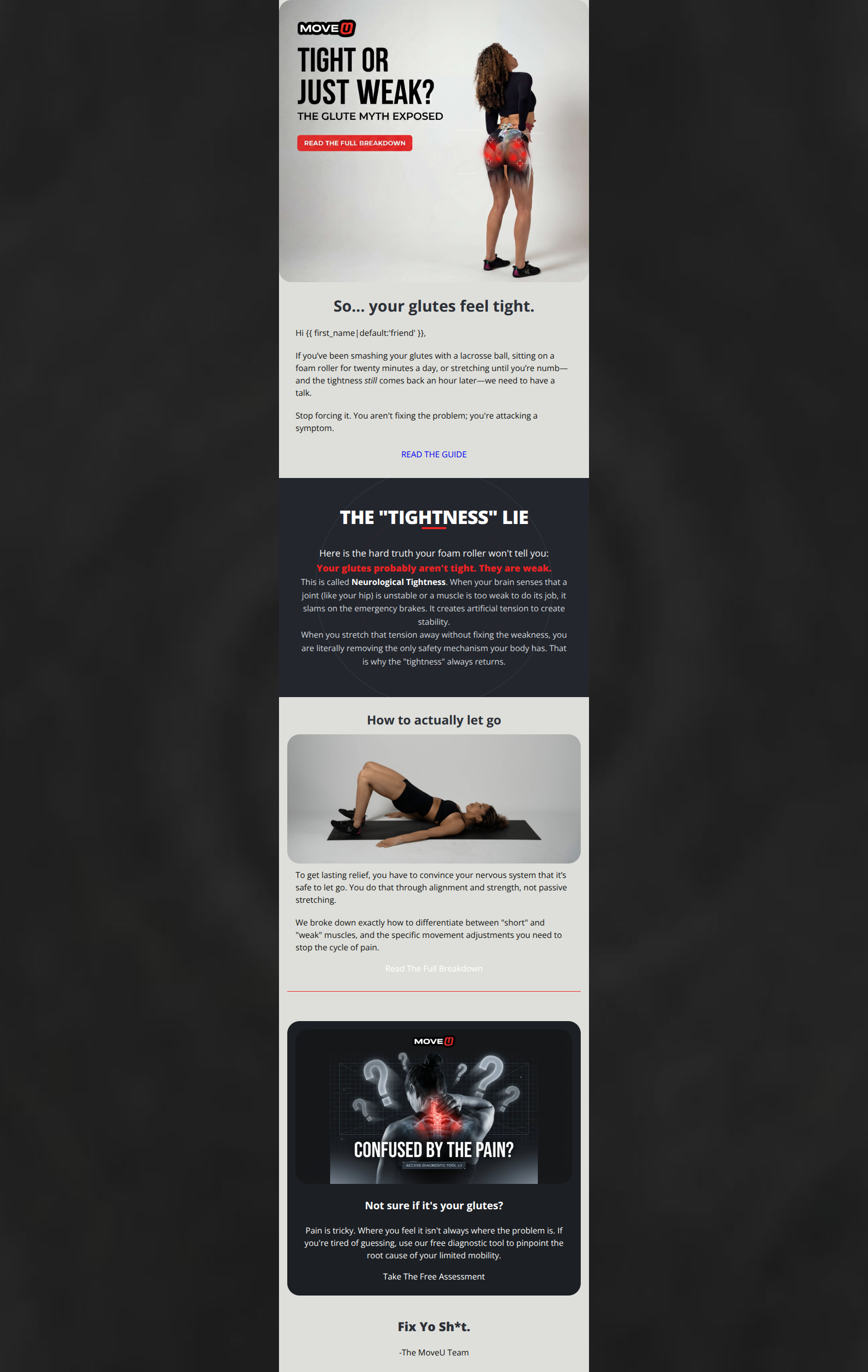 This is a strong, highly brand-aligned educational email that effectively uses the 'tough love' voice to build authority. The content flow is logical, debunking a common myth before offering a solution. However, the primary call-to-action in the hero is embedded in the image (making it invisible if images are blocked), and the first actual HTML button appears quite late in the scroll depth, potentially losing impatient skimmers.