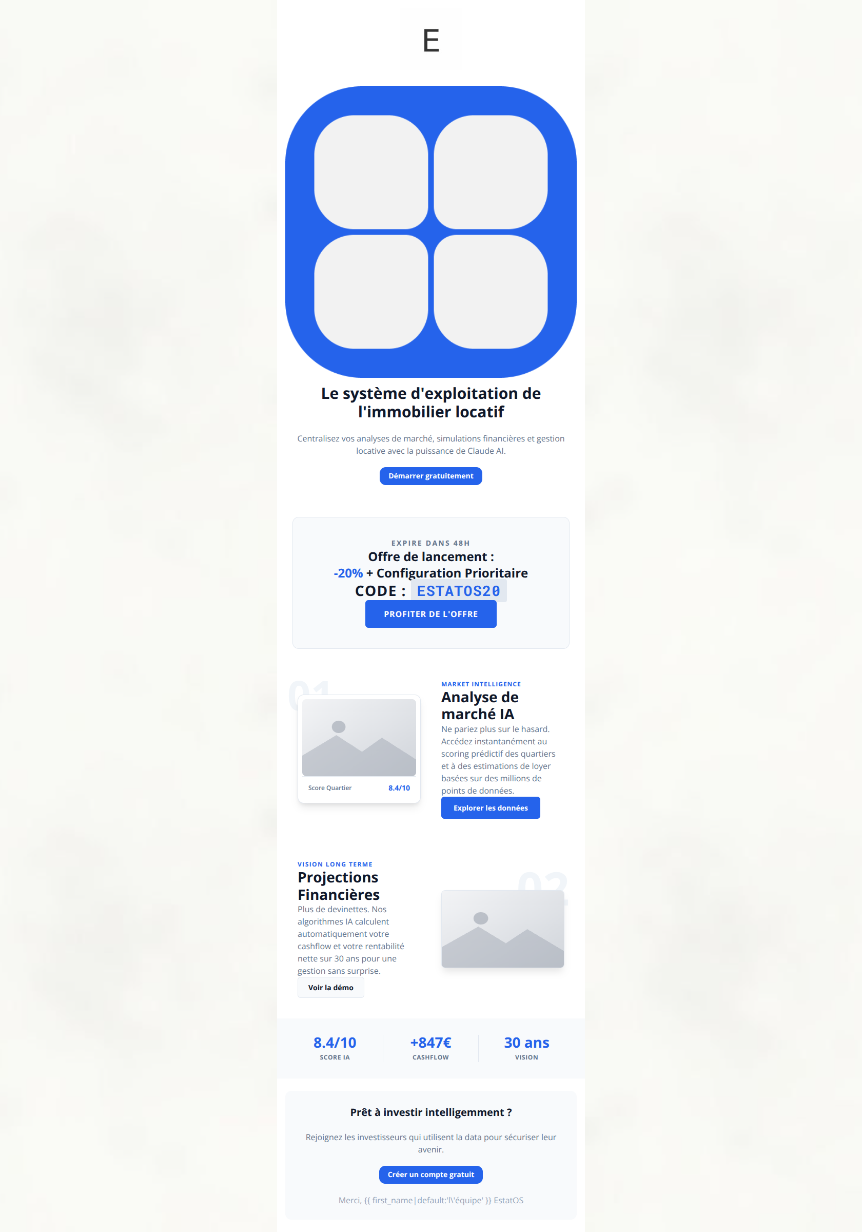 This email contains a critical failure: the use of generic placeholder images (gray boxes with mountain icons) in the feature sections completely undermines the brand's promise of 'precision' and 'technological sophistication'. While the copy and typography are strong, the massive logo in the hero pushes the value proposition too far down, and the lack of actual product visuals makes the 'AI-driven' claims feel unsubstantiated.