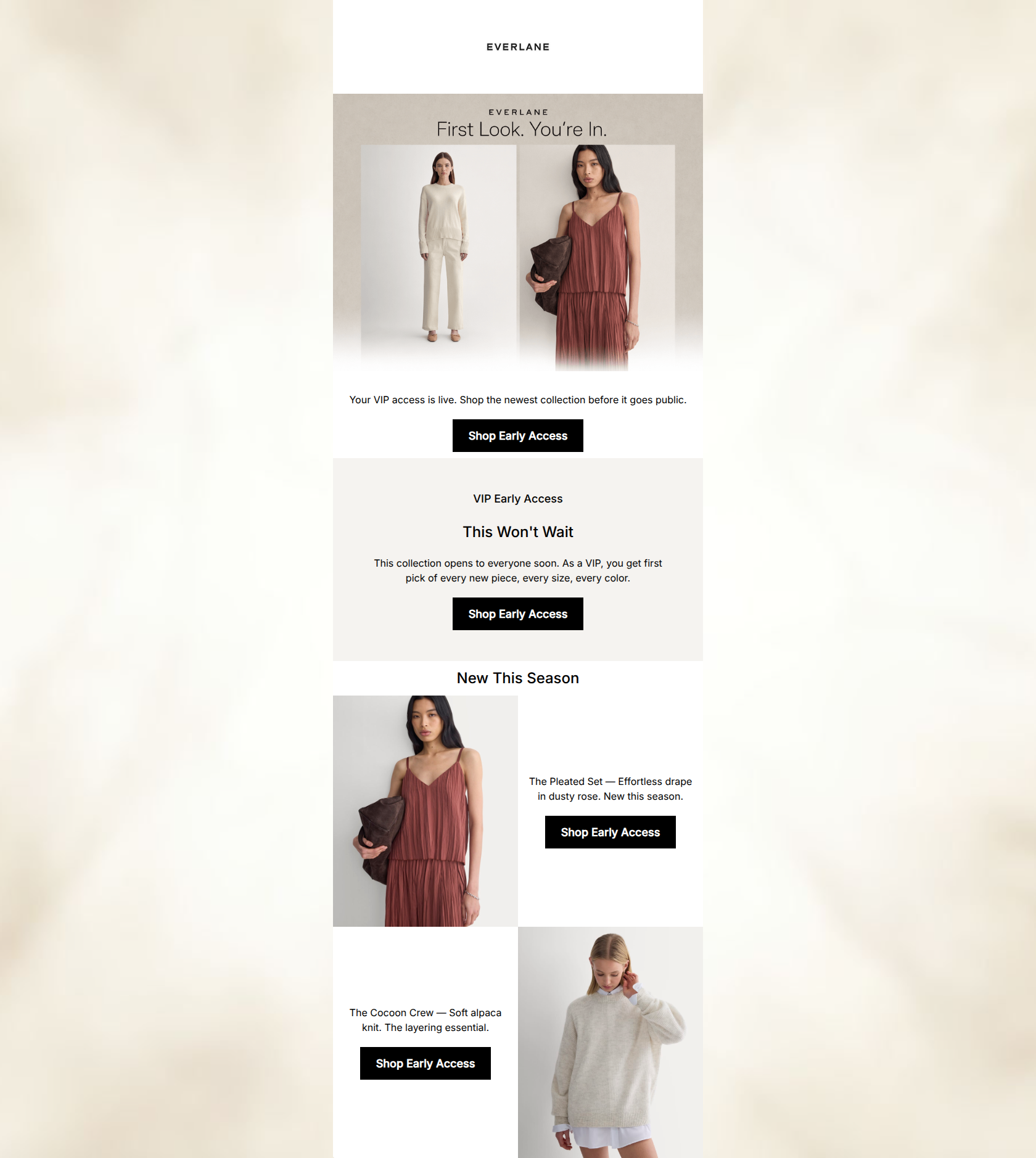 “You're in. New collection, early access.”