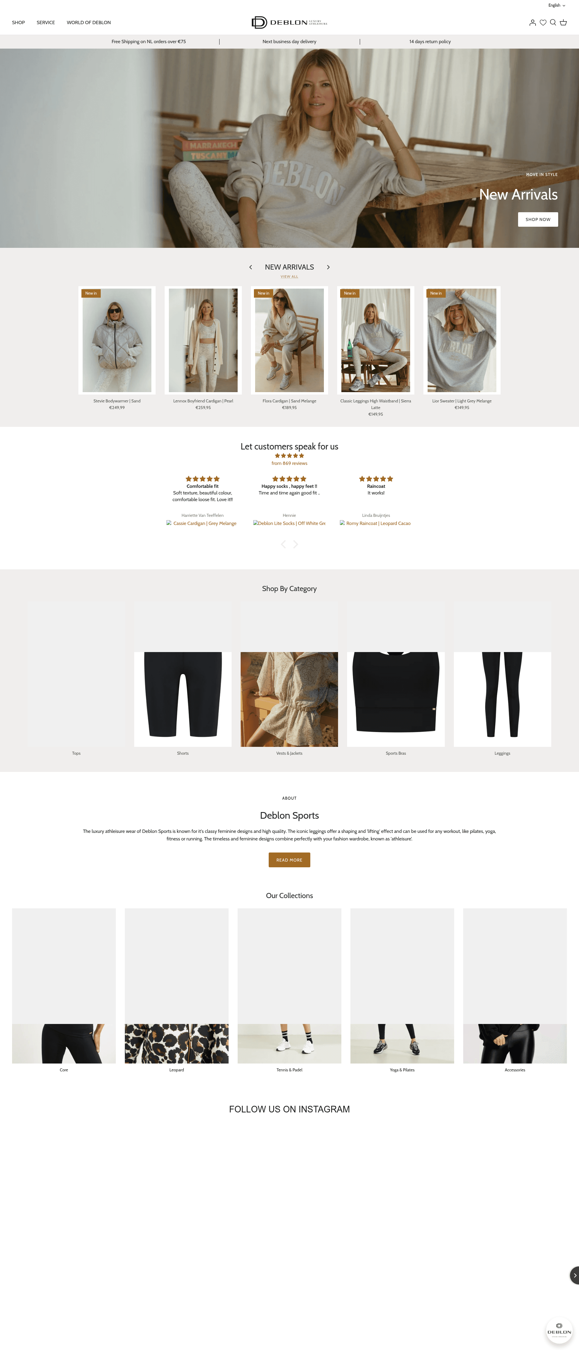 The presence of original photography, a dedicated 'World of Deblon' blog, and specialized collections like 'Tennis & Padel' completely differentiates this from a generic dropshipping site.