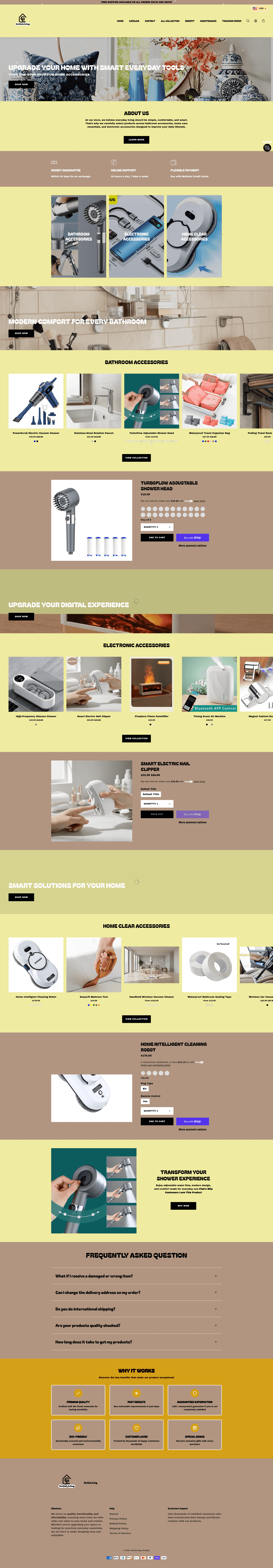 The headline 'Upgrade Your Home With Smart Everyday Tools' immediately tells visitors what they can buy.