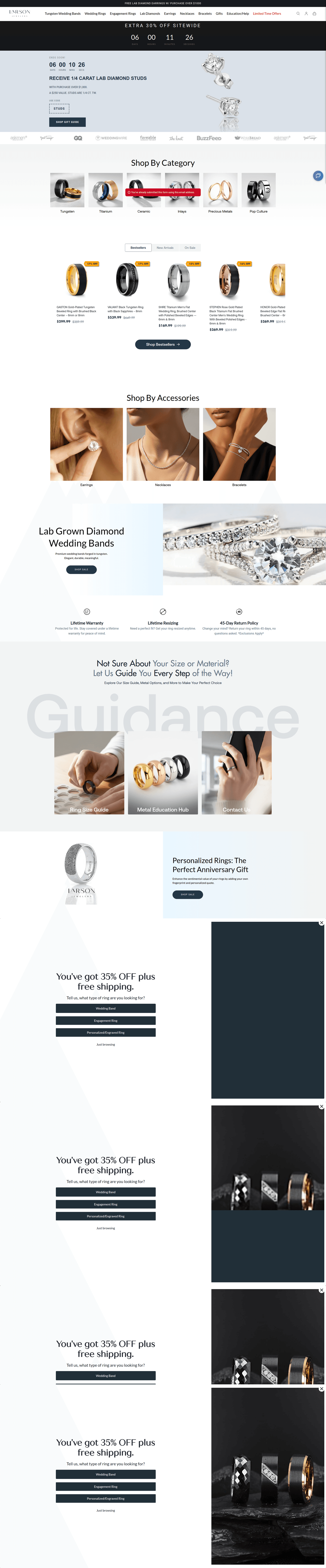 Improve with Kopi AIImplement a clear, keyword-rich H1 tag on the homepage (e.g., 'Larson Jewelers: Lifetime Guaranteed Wedding Bands & Engagement Rings'). Also ensure Title and Meta Description tags are present.