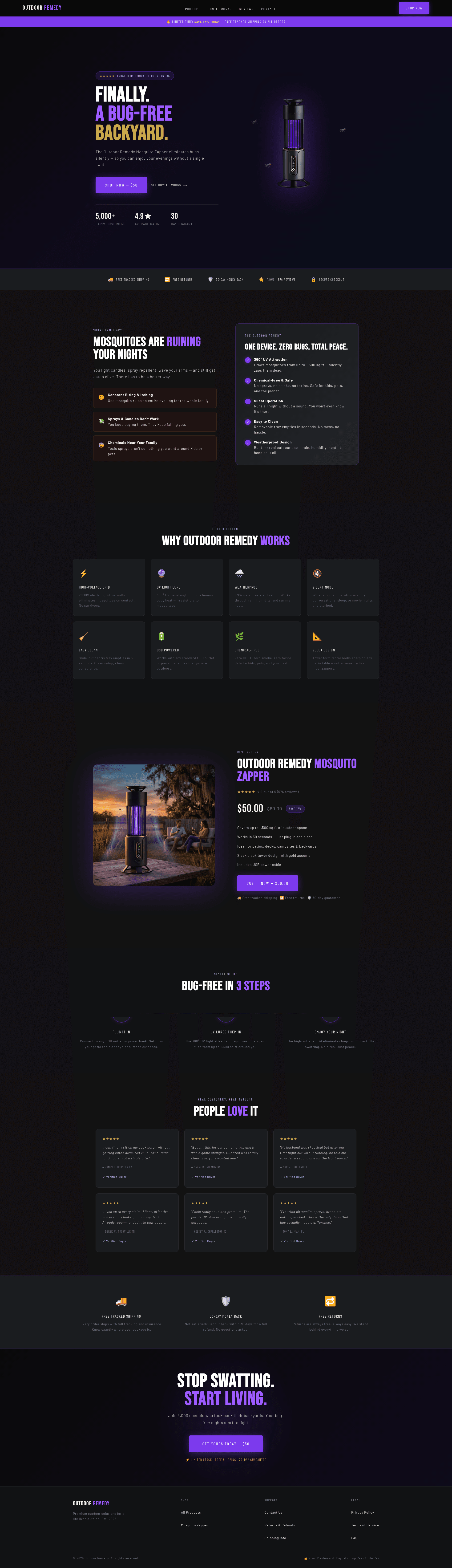 The dark purple and black theme is perfectly aligned with the nighttime product use case.