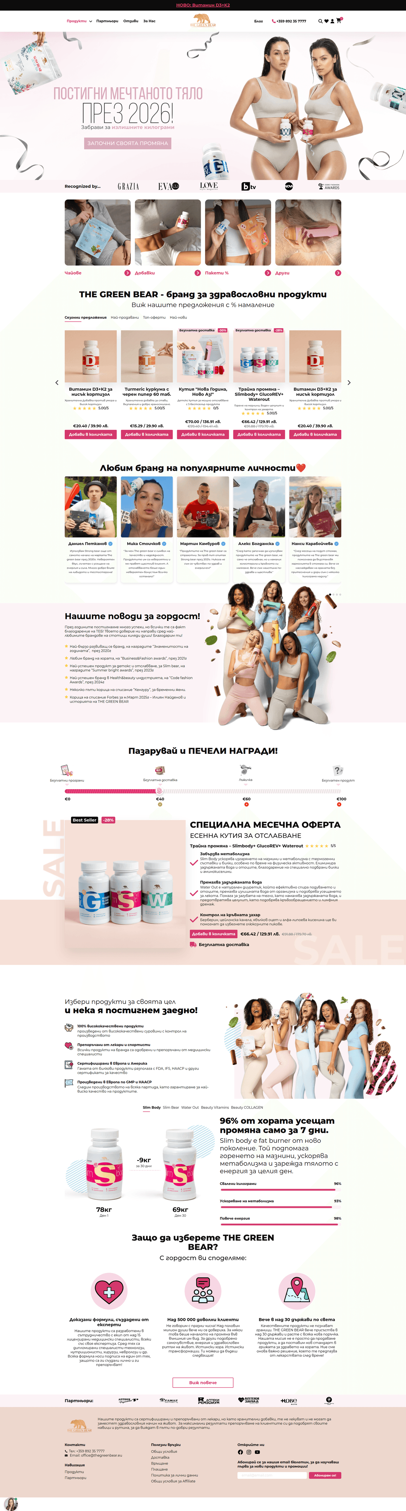 The lifestyle photography, particularly the model shoots, is professional and high-fashion, clearly visualizing the desired outcome (fit, healthy body). This serves as strong aspirational marketing and is not relying on generic stock photos.