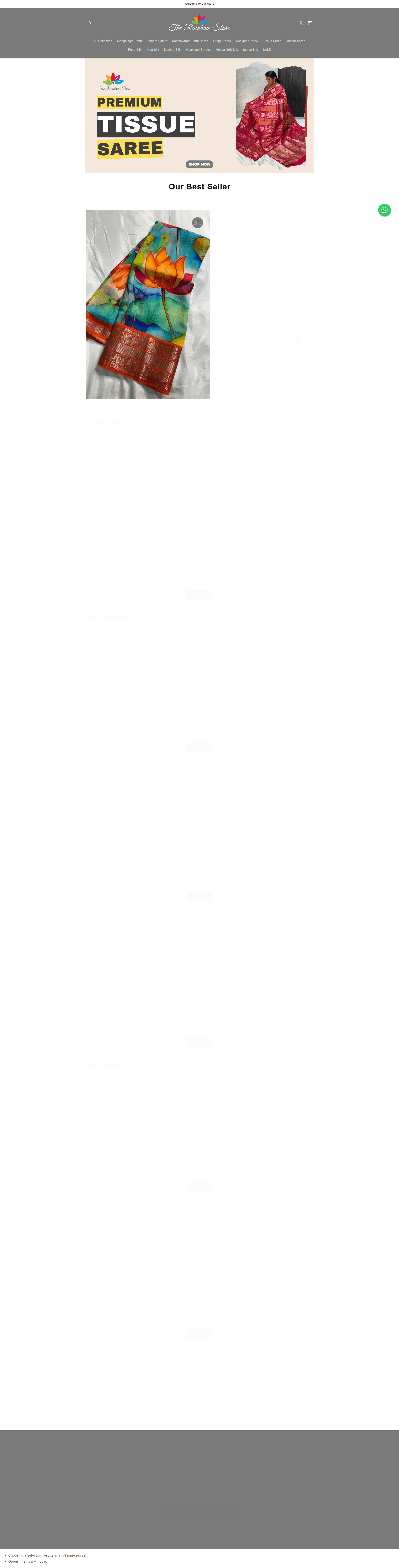 Improve with Kopi AIReplace 'Welcome to our store' with a powerful headline that explains why your sarees are special (e.g., 'Authentic Mangalagiri Handlooms Delivered Worldwide').